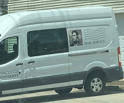 The Harrison connection is one of the few claims to fame for the small town of Vincennes, so I spotted something truly incredible right away: a mail van with William Henry Harrison’s portrait on it. Where else are you going to see that?