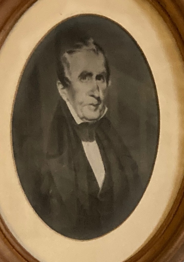 My favorite part of Grouseland was its collection of paintings and portraits. Some of them are famous, like this original painting of a young Harrison that I’ve seen in quite a few books and articles. The tour guide referred to it as “probably the most valuable thing in the whole house.” It used to show him in civilian clothes but was repainted after the Battle of Tippecanoe and War of 1812 to capitalize on Harrison’s fame as a soldier. How vain!